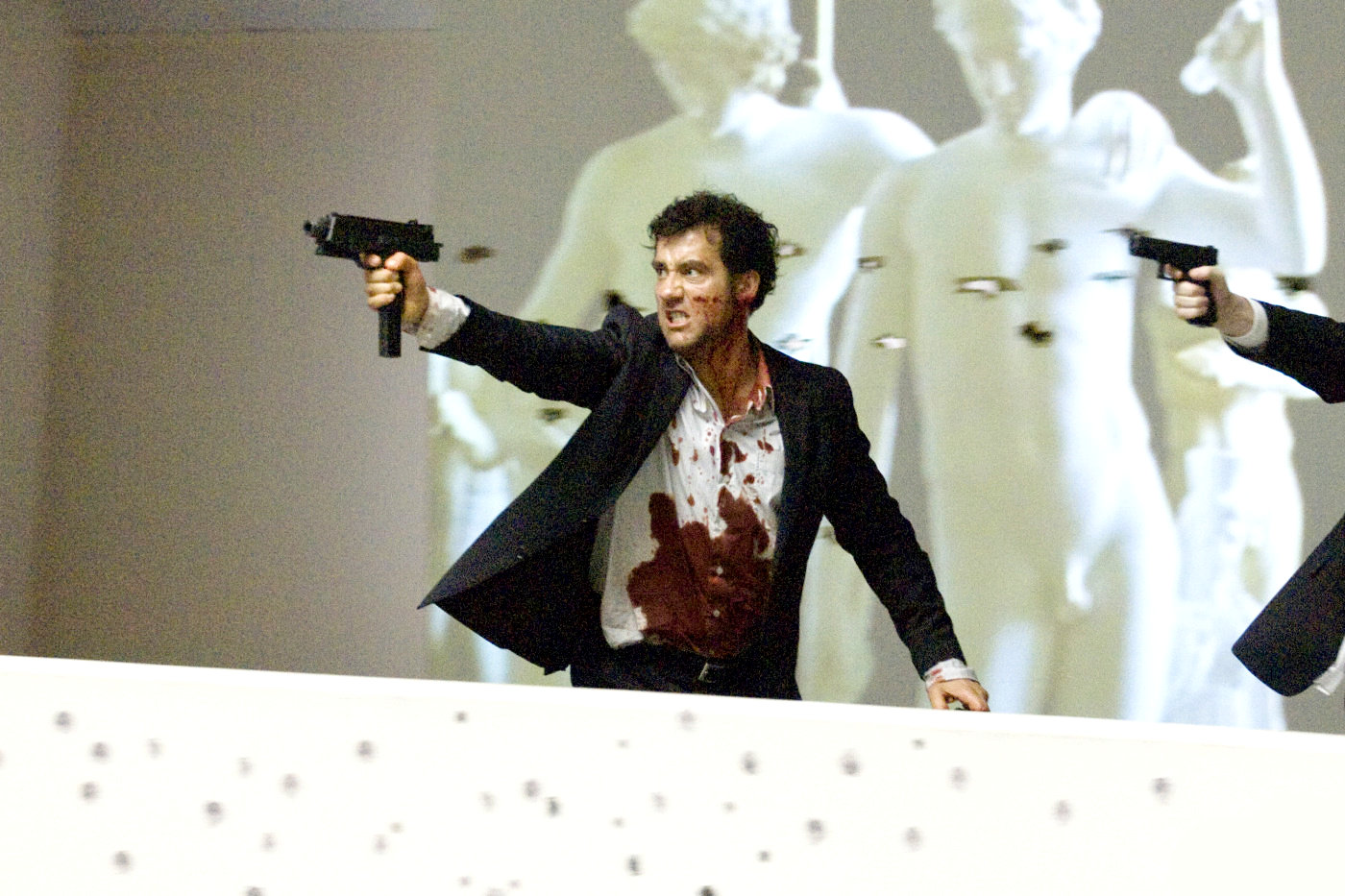 Lou Sallinger (Clive Owen) saat membela diri dari usaha pembunuhannya |